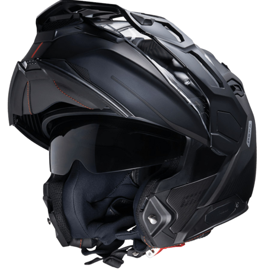 Nexx X.Vilijord Carbon Helmet Zero Pro Carbon Matte Black. Modular adventure helmet, extremely versatile and functional. Made of very light carbon fiber, it has been manufactured to be used on any terrain and in any circumstance. It has an integrated sun visor, X-Mart Dry interior padding, an effective ventilation system and a removable visor. The helmet has P / J approval to ride in complete safety both with the helmet closed in full-face mode and with the helmet open in jet mode.